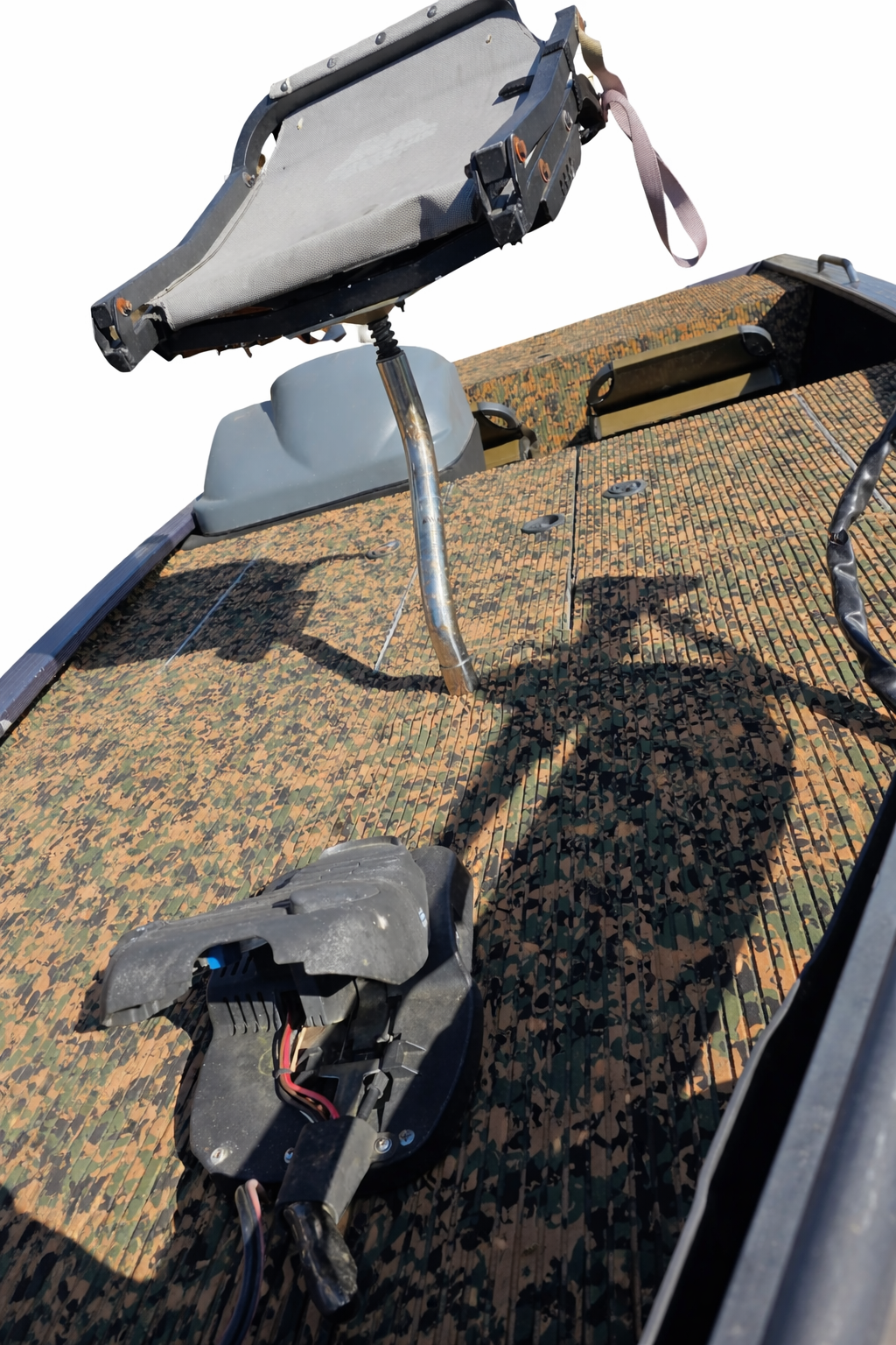 On the boat itself, Brown Camo is one of the cleanest visual matches for raw or painted aluminum. Natural aluminum's silver-gray tone contrasts with darker camo patterns, but Brown Camo's warm tones bridge the gap and create a cohesive look even on unpainted hulls. For boats that have not been repainted or wrapped, this matters — Brown Camo looks like it belongs, not like it was added as an afterthought.